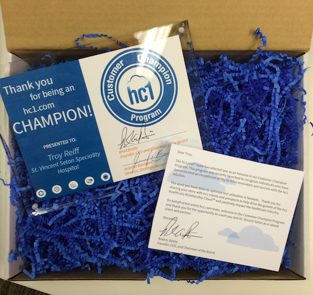 We are pleased to announce that we have launched the hc1 Customer Champion Program. The Customer Champion Program rewards our all-star clients for their outstanding use of hc1. At hc1.com, we are dedicated to enabling our customers continue to see the value in the hc1 solution and showcase their success.