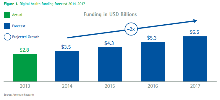 According to an article on healthitanalytics.com, Accenture has come up with 5 key issues that are driving investment levels to almost double in the next 3 years: